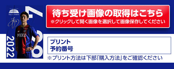 Genießen Sie das Bild als Hintergrundbild vom Ticketkauf bis zum Spiel und drucken Sie das Erinnerungsbild dieses denkwürdigen Spiels, das nach der Renovierung des Japan National Stadium das erste Heimspiel als alleiniges Team ist (kostenpflichtig, 300 Yen pro Stück), um es als Andenken zu behalten!