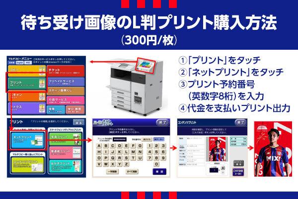 Bitte geben Sie an den Multifunktionsdruckern bei Seven-Eleven die unten stehende Druckreservierungsnummer ein und drucken Sie das Bild aus. Der Preis beträgt 300 Yen (inkl. MwSt.) pro Stück.