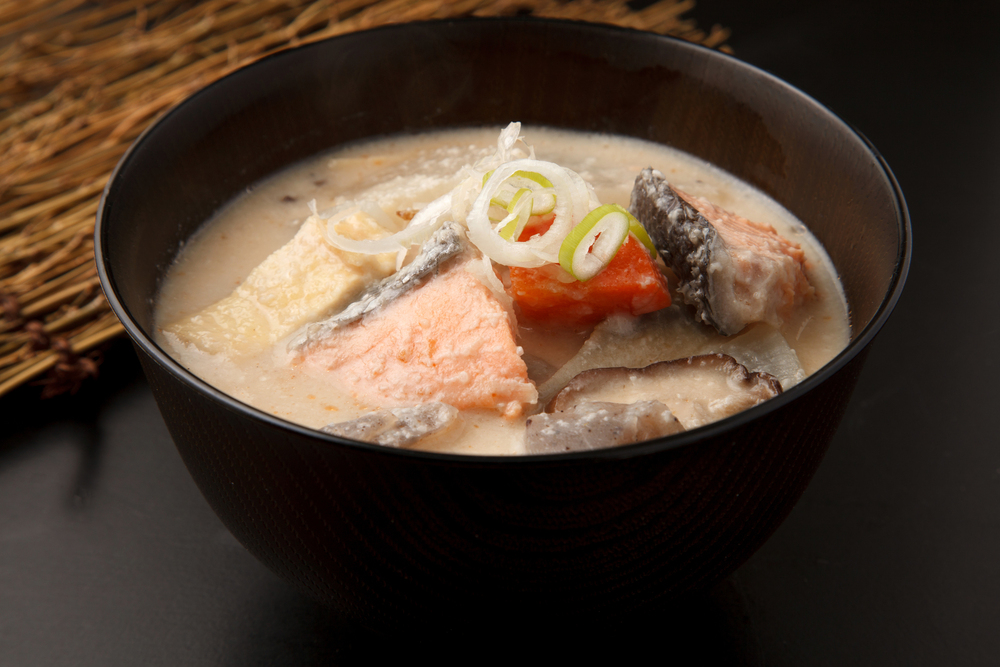 ・Lachssuppe mit Sake-Kleie 600 Yen