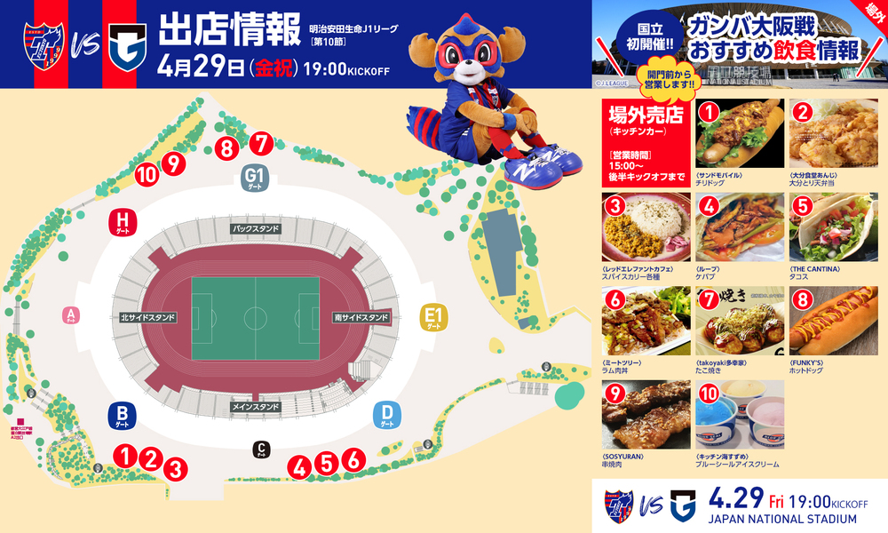 Sa., 29.04. (Feiertag) 2022 Meiji Yasuda J1 League 10. Spieltag vs Gamba Osaka (Anstoß 19:00 / Japan National Stadium) – Informationen zu Speisenständen und Attraktionen!