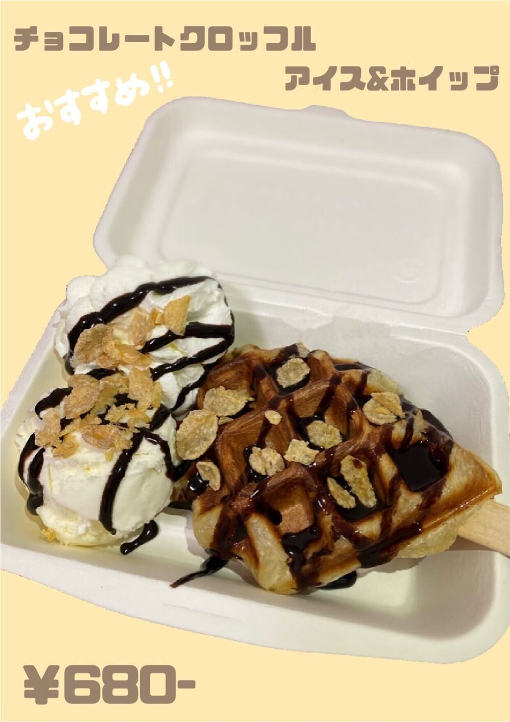 ・Schokoladen-Croffle mit Schlagsahne 600 Yen