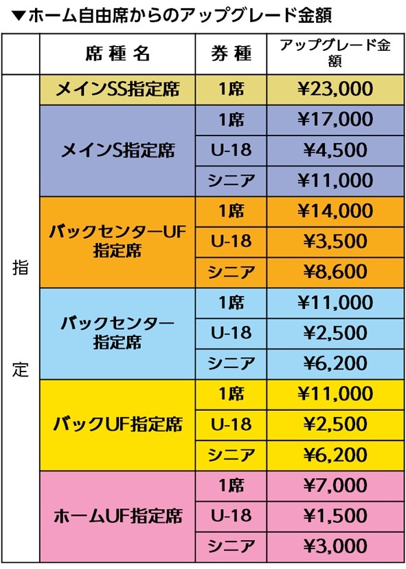 ※Für die Back-UF-Reservierten Plätze und Home-UF-Reservierten Plätze besteht kein Vorrangrecht auf den Kauf desselben Sitzplatzes bei Verlängerung im nächsten Jahr.