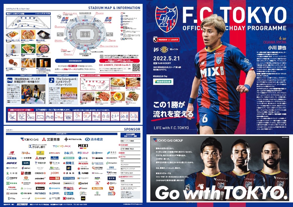 Sa., 21.05.2022 Meiji Yasuda J1 League Runde 14 vs Kashiwa Reysol (Anpfiff 15:00 / Ajinomoto Stadium) Offizielles Matchday-Programm, Informationen wie folgt.