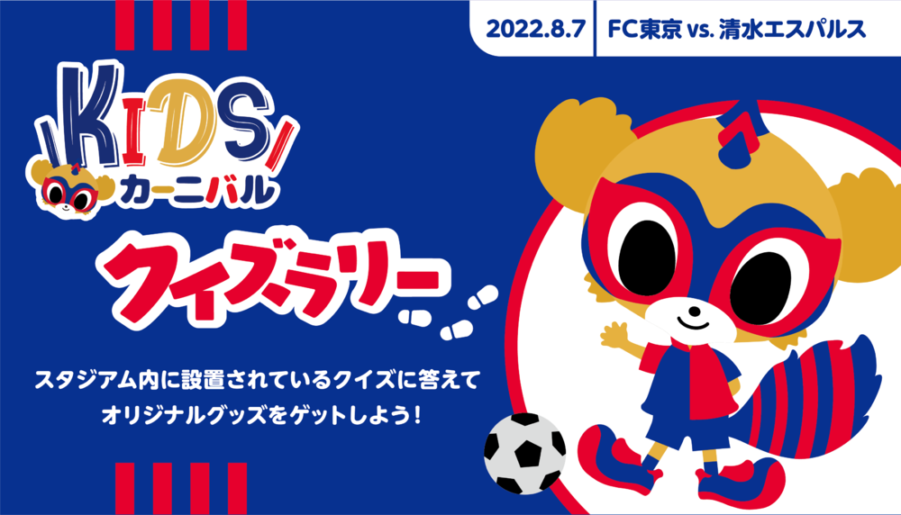 So., 07.08.2022 Meiji Yasuda J1 League, 24. Spieltag vs Shimizu S-Pulse (Anstoß 18:00 / Ajinomoto Stadium), findet das Kids Carnival Quiz Rally statt.