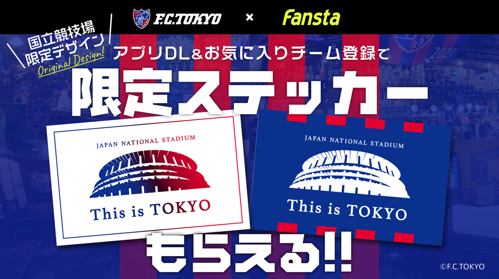 Wenn Sie die Fansta-App herunterladen und FC Tokyo als Lieblingsteam registrieren, erhalten die ersten 1.500 Personen einen limitierten Aufkleber als Geschenk!
