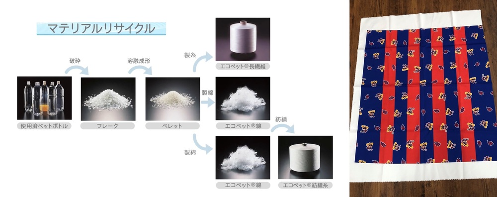 □Wie PET-Flaschen zu neuen Produkten werden① PET-Flaschen, von denen Etikett und Verschluss entfernt wurden, können als Recyclingmaterial effektiv genutzt werden.