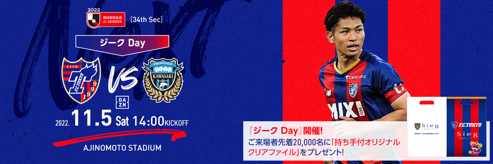 Am Sa., 05.11.2022 findet im Rahmen der 34. Runde der Meiji Yasuda J1 League das Spiel FC Tokyo gegen Kawasaki Frontale (Anpfiff 14:00 im Ajinomoto Stadium) die Veranstaltung „AO-AKA STREET“ statt.