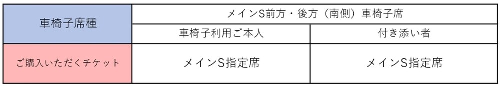 ※Die Rollstuhlsitzplätze, auf denen Sie mit der Uniform oder den Fanartikeln des Gastteams zuschauen können, sind nur die vorderen Rollstuhlsitzplätze im Hauptbereich S (Südseite) und die hinteren Rollstuhlsitzplätze im Hauptbereich S (Südseite).