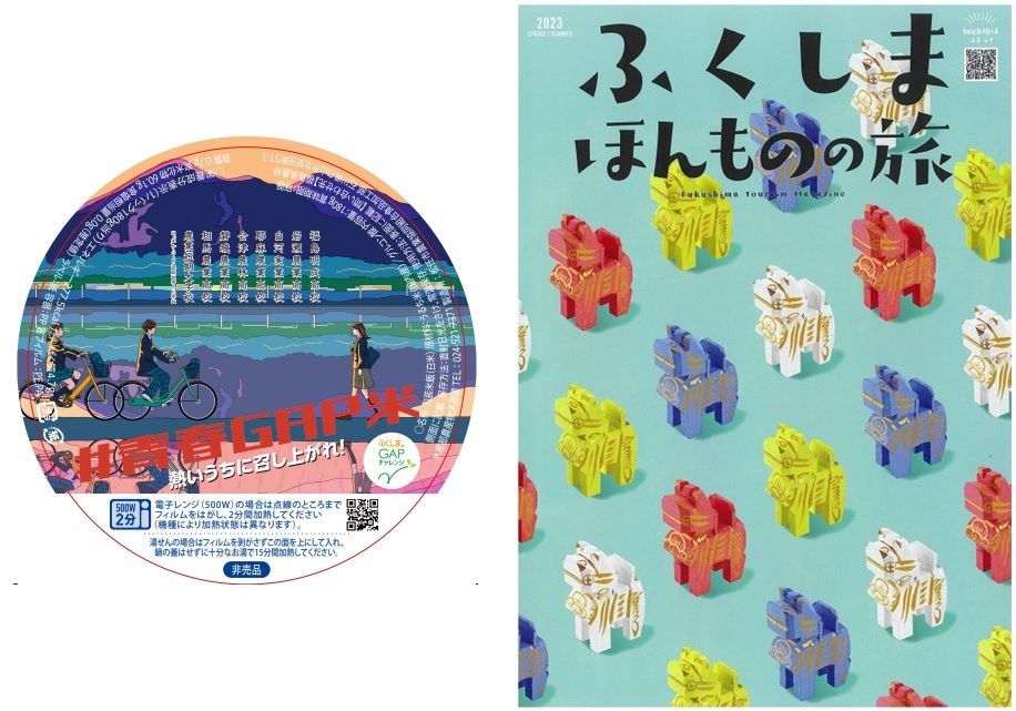 Es werden Broschüren wie „Seishun GAP Reis (verpackter Reis)“ und „Fukushima echte Reise“ sowie weitere Flyer verteilt.