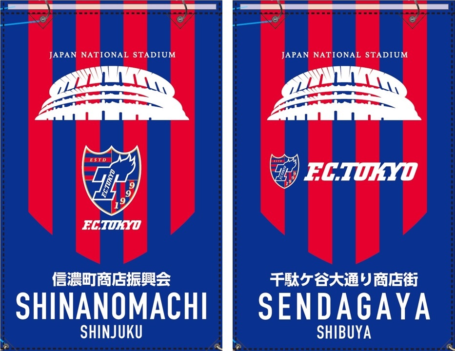 Dank der Unterstützung der Shinanocho Handelsfördervereinigung und der Sendagaya-Odori-Einkaufsstraße werden exklusive Straßenlaternenfahnen für Veranstaltungen im Japan National Stadium aufgehängt!