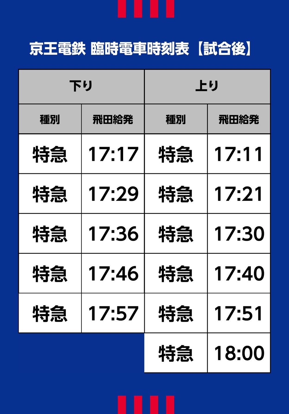 Abfahrt ab Tobitakyu Richtung Abwärts: 17:17–17:57, 5 Expresszüge