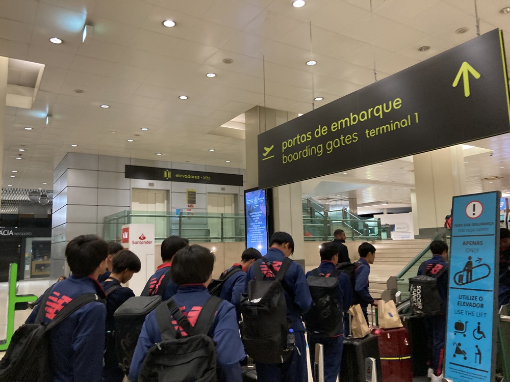 Am 5. Tag der Reise, Do., 07.04., gab es aufgrund des Spiels gegen Sporting CP am gestrigen Abend ein spätes Abendessen und dann Schlaf, aber um 4 Uhr morgens checkten wir aus dem Hotel aus und machten uns auf den Weg zum nächsten Ziel der Reise, San Sebastián in Spanien. Zuerst ging es zum Flughafen Humberto Delgado in Lissabon. In den letzten Tagen waren die lokalen TV-Sendungen und Nachrichten voll von Gesprächen über das am Fr., 07.04. stattfindende portugiesische Primeira Liga „O Clássico“ zwischen SL Benfica und FC Porto, und sogar eine Reinigungskraft am Flughafen sprach uns an mit den Worten: „Wenn Benfica heute gewinnt, rückt der Meistertitel näher!“