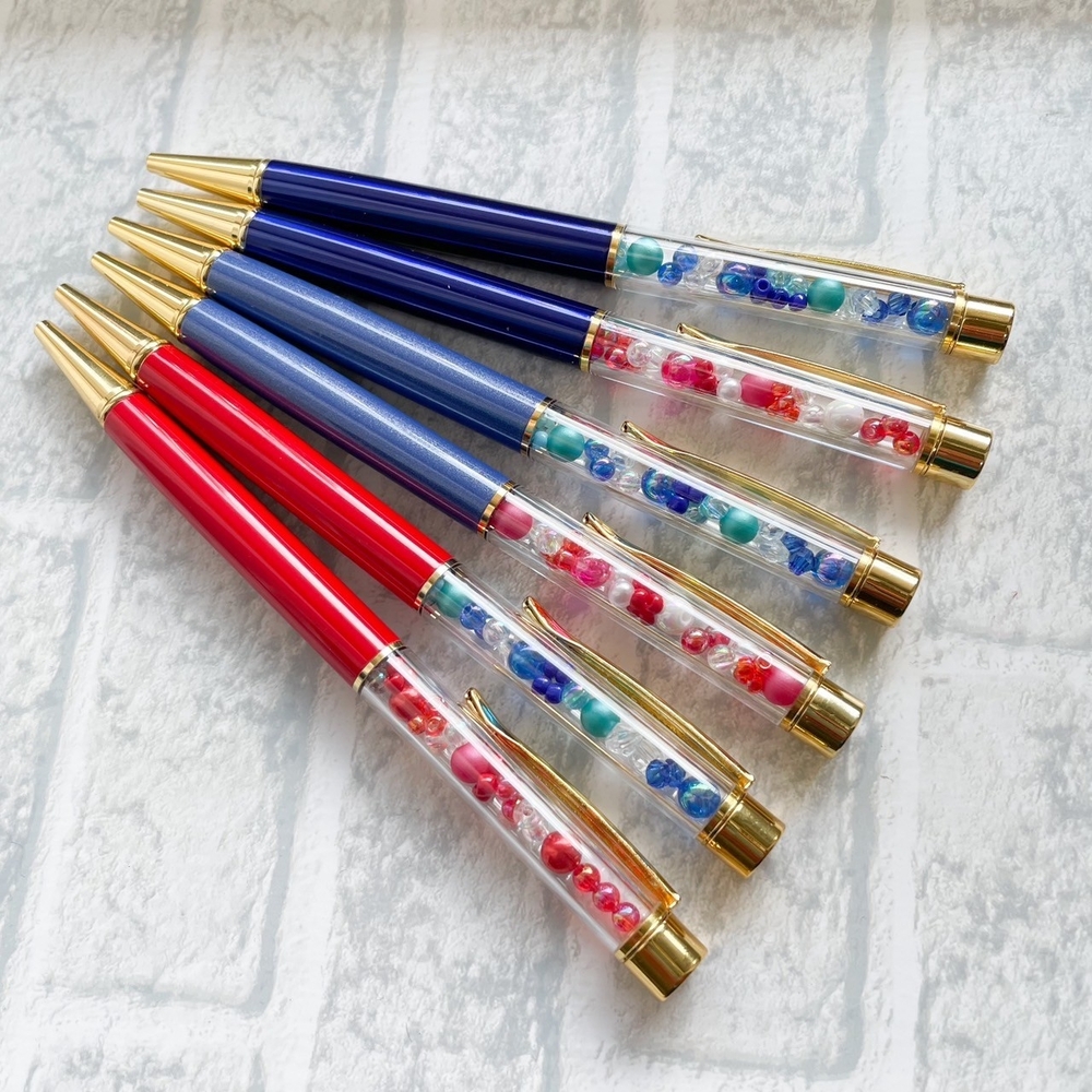 Wählen Sie Ihre bevorzugte Art & Farbe der Kugelschreiberteile aus und fügen Sie verschiedenfarbige Perlen hinzu, um Ihren eigenen Original-Kugelschreiber zu gestalten. Wir haben viele verschiedene Farben für Kugelschreiberteile und Perlen vorbereitet, also genießen Sie es, Ihren ganz persönlichen Original-Kugelschreiber zu kreieren!