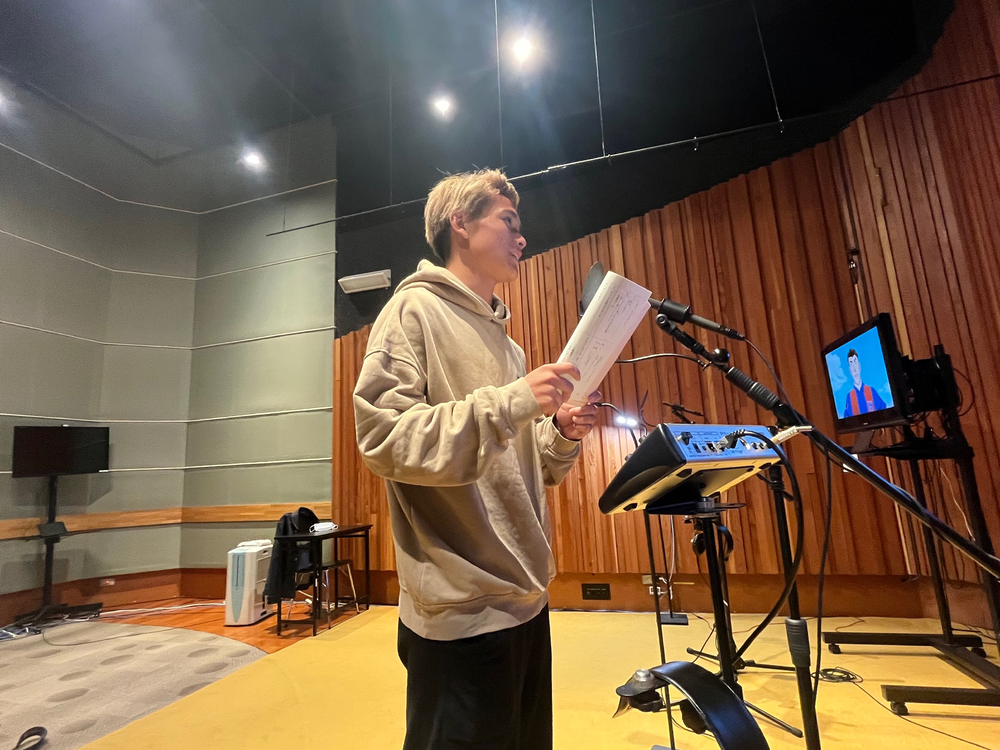 „Das Synchronsprechen für einen Anime war das erste Mal für mich, deshalb war es sehr schwierig. Aber es ist eine Erfahrung, die man nicht oft machen kann, und ich habe es genossen, es zu tun. Natürlich war es nicht beim ersten Mal perfekt, aber die Zeit, die ich für das Synchronsprechen gebraucht habe, betrug ungefähr 10 Minuten. Ich denke, es lief ziemlich reibungslos.“
