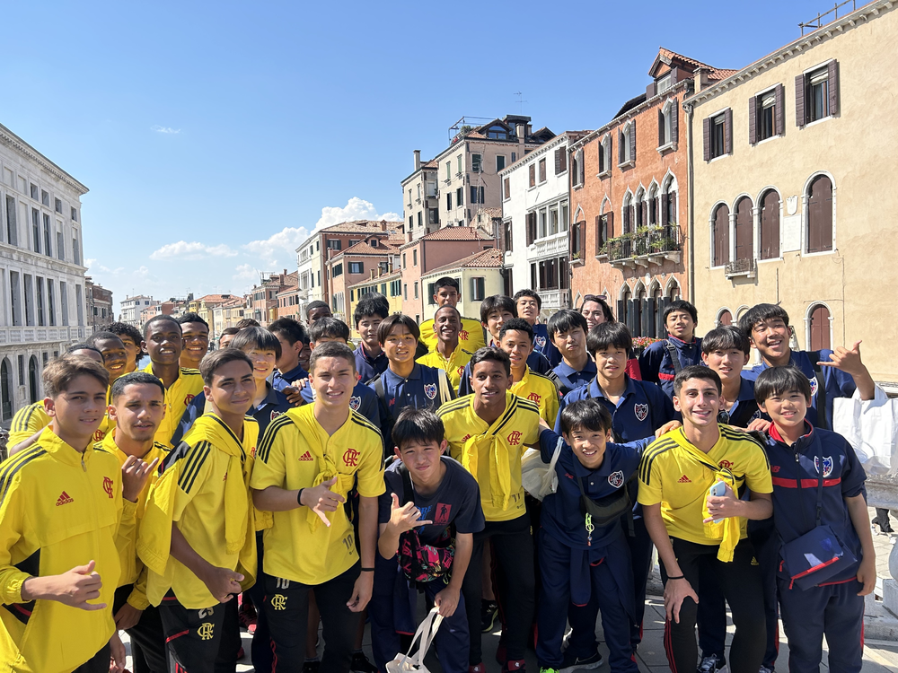 Während wir weiterhin durch die Straßen von Venedig schlenderten, trafen wir auf die Spieler von Flamengo, die das Turnier gewonnen hatten. Wir gratulierten ihnen zum Sieg, tauschten uns aus und machten gemeinsam ein Erinnerungsfoto.