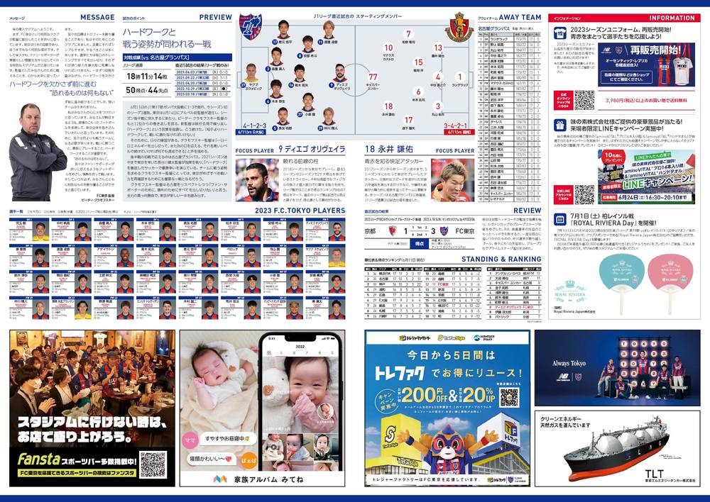 Sa., 24.06.2023 Meiji Yasuda J1 League, 18. Spieltag vs Nagoya Grampus (Anstoß 19:00 / Ajinomoto Stadium) Offizielles Matchday-Programm, Informationen wie folgt.
