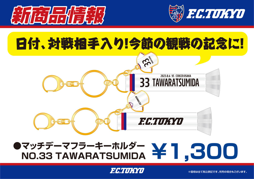 Am So., 06.08.2023, beim Spiel der Meiji Yasuda J1 League gegen Cerezo Osaka (Anpfiff 19:00 / YODOKO SAKURA STADIUM) werden FC Tokyo Fanartikel verkauft. Bitte kaufen Sie diese als Andenken an den Besuch.