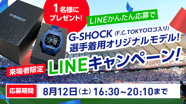 Ankündigung der exklusiven LINE-Kampagne für Besucher mit Gewinnchance auf das von Spielern getragene Modell „G-SHOCK (mit F.C.TOKYO-Logo)“