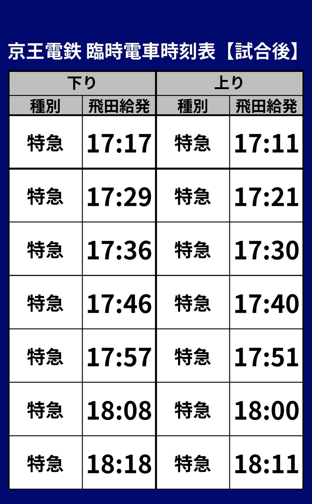 Abwärts… Schnellzüge ab Tobitakyu von 17:17 bis 18:18 / insgesamt 7 Züge