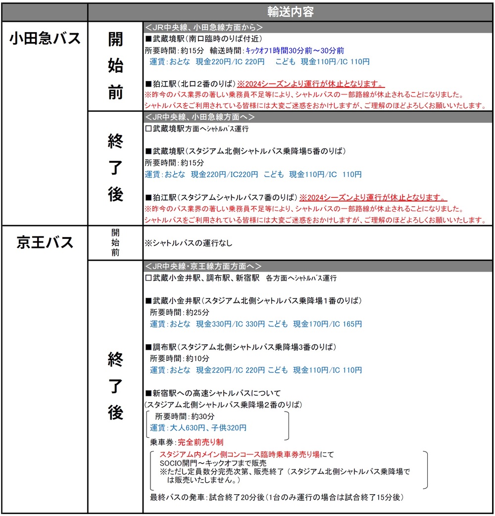 Am Sa., 02.03.2024, im Rahmen der 2. Runde der Meiji Yasuda J1 League 2024 gegen Sanfrecce Hiroshima (Anpfiff 15:00 / Ajinomoto Stadium) informieren wir über den Sonderverkehr (Bahn), Shuttlebus- und Linienbusverbindungen.