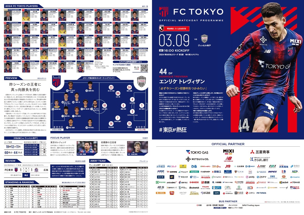 Sa., 09.03. Offizielles Matchday-Programm zum Spiel der 3. Runde der Meiji Yasuda J1 League 2024 gegen Vissel Kobe (Anpfiff 16:00 / Ajinomoto Stadium), wie unten beschrieben.