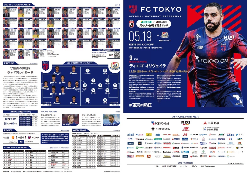 So., 19.05.2024 Meiji Yasuda J1 League 15. Spieltag vs Yokohama F.Marinos (15:00 Anpfiff / Ajinomoto Stadium) Offizielles Matchday-Programm, Informationen wie folgt.