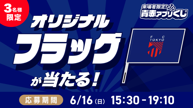 • Ankündigung der exklusiven „Blau-Rot-App-Lotterie“ für Besucher am 16.06. (So) beim Spiel gegen Iwata mit Gewinnmöglichkeiten für originale FC Tokyo Fanartikel