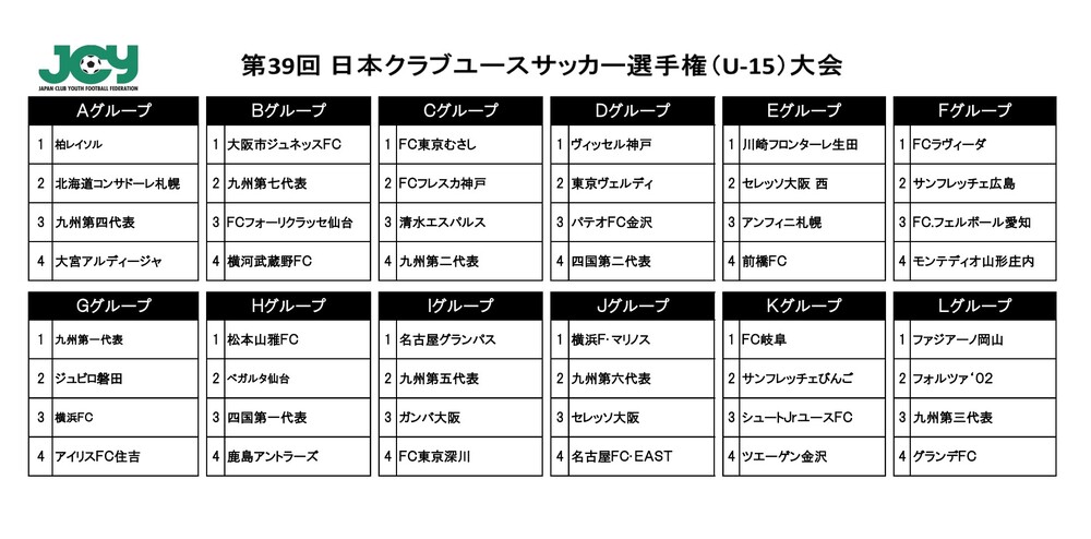 Wir möchten Sie darüber informieren, dass die Turnierübersicht für die 39. Japanische Club-Youth-Fußballmeisterschaft (U-15), an der FC Tokyo U-15 Fukagawa und FC Tokyo U-15 Musashi teilnehmen, festgelegt wurde. Bitte unterstützen Sie beide Teams mit herzlichem Beifall.