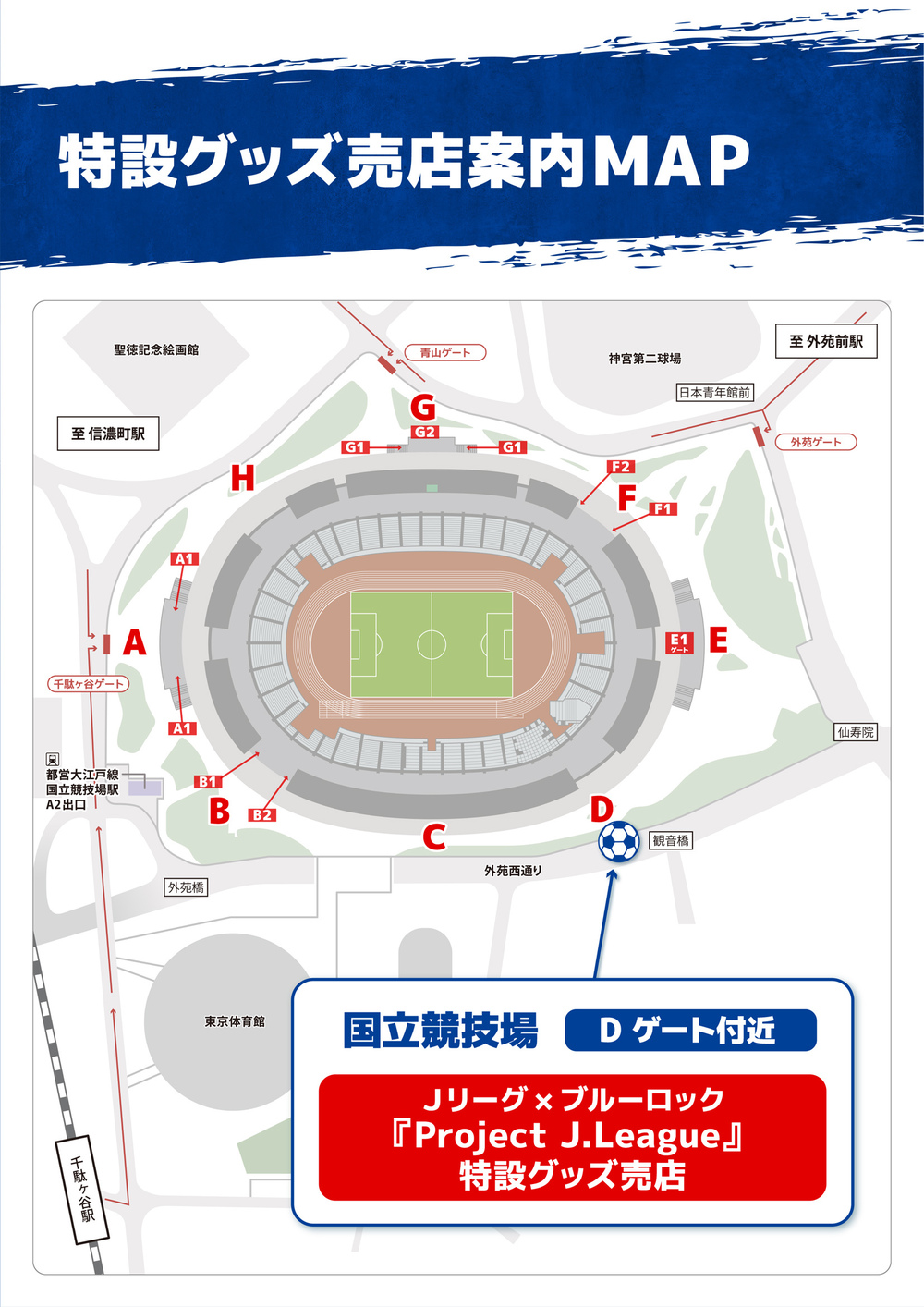 In der Nähe des D-Gates im Japan National Stadium, spezieller Verkaufsstand für J-League × Blue Lock „Project J.League“ Artikel