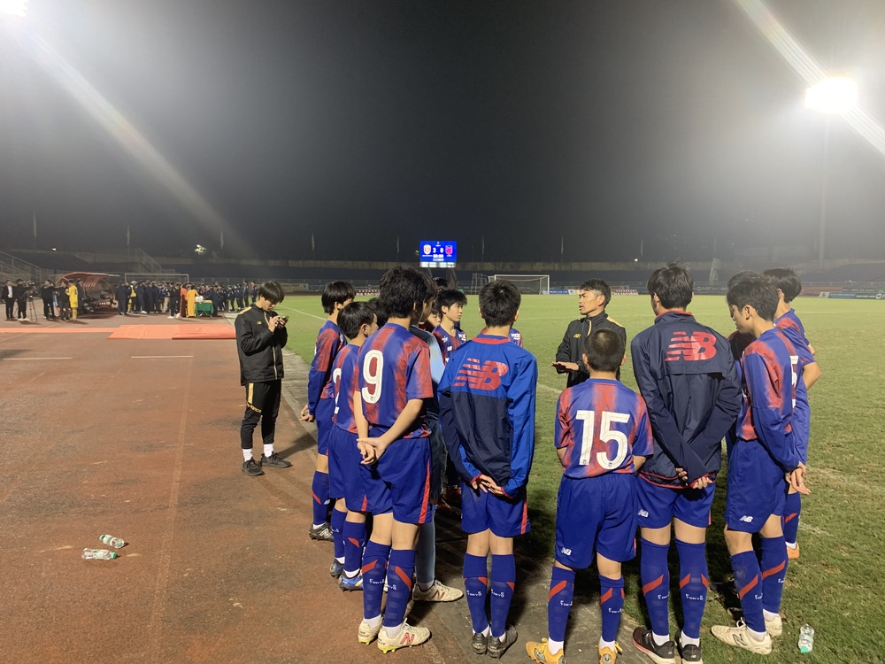 Obwohl wir in der ersten Halbzeit lange Ballbesitz hatten, konnten wir keine gezielten und effektiven Angriffe starten. In der 8. Minute erzielte Spieler Aoi Murayama per Kopfball nach einer Ecke das erste Tor. Danach gelang uns kein weiteres Tor, stattdessen wurde uns nach einer Ecke des Gegners ein Elfmeter zugesprochen, der verwandelt wurde, sodass wir mit einem Unentschieden in die Halbzeitpause gingen. In der Halbzeitpause überprüften wir sorgfältig, wie wir den Ball im Mittelfeld bewegen, den richtigen Zeitpunkt für Angriffe und die Nutzung von Räumen. In der zweiten Halbzeit konnten wir den Ball rhythmisch bewegen und die gegnerische Abwehr gezielter auseinanderziehen. Dadurch erzielten wir kontinuierlich weitere Tore (durch Spieler Ryosei Nozawa, Kyotaro Ono, Yushu Hirakawa und Yume Hirai) und gewannen letztlich mit 5:1, womit wir ins Finale am Nachmittag einzogen.