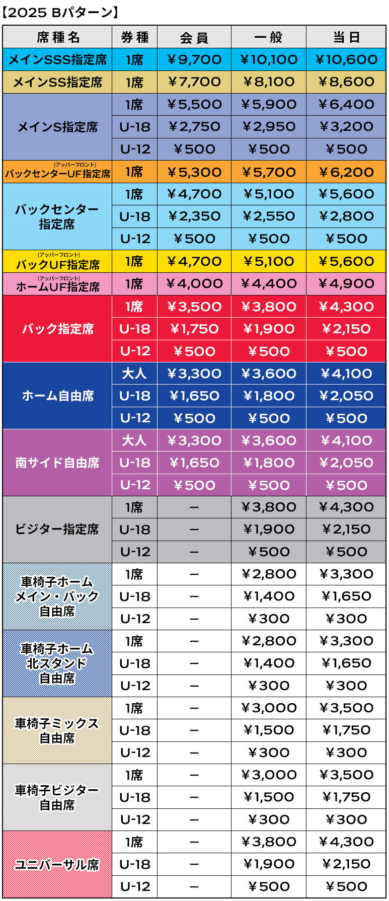 ※Die Servicegebühr für den Kauf von Tickets über J-League Tickets wird ab dem 07.01.2025 (Di) 18:00 für alle danach getätigten Ticketkäufe geändert.