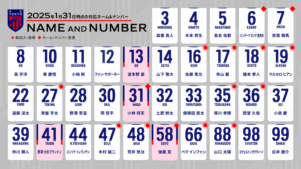 ・Für Trikots ohne Name und Nummer, die nicht am Haupt-Gate 1 Außenshop am Spieltag gekauft wurden, erfolgt die Beflockung im FC Tokyo OFFICIAL SHOP.