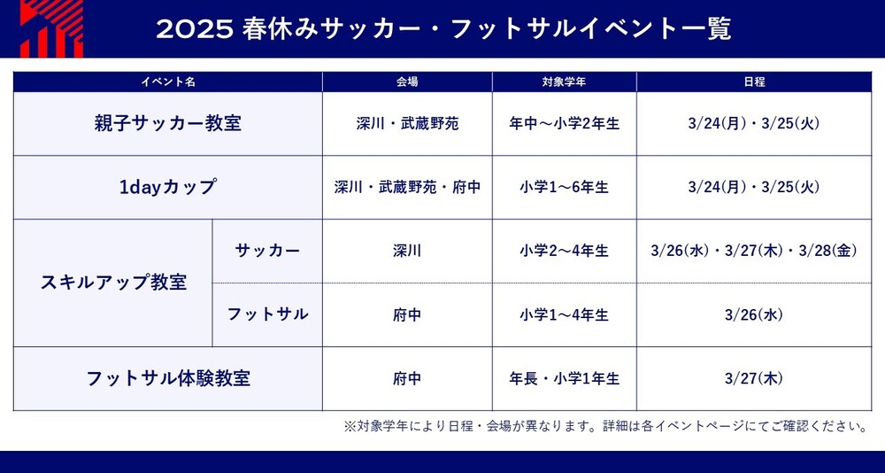 【Baldige Anmeldefrist!】Zur Durchführung der FC Tokyo Fußball- und Futsal-Events in den Frühjahrsferien 2025
