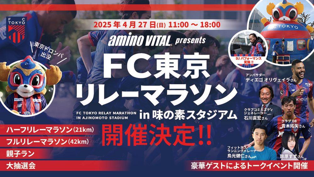 Als Hauptpartner wurde die Unterstützung von „AminoVital® (AJINOMOTO CO., INC.)“ bestätigt, und der Name des Wettbewerbs wurde auf „AminoVital® presents FC Tokyo Staffellauf im Ajinomoto Stadium“ festgelegt. Die Teilnahme von CG Ishikawa als Gast wurde bestätigt.