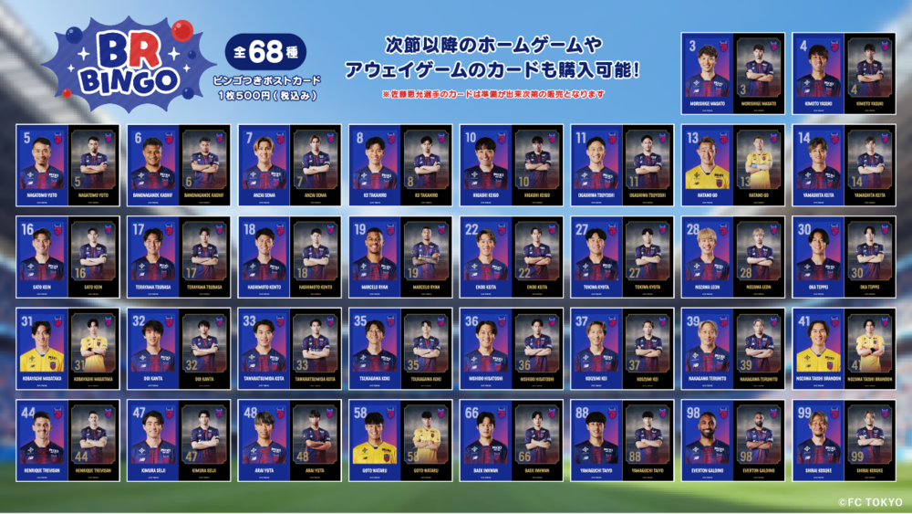 Wir verkaufen Postkarten mit Bingo-Funktion im Euro Sports Ajinomoto Stadium Shop, damit Sie das Spiel noch mehr genießen können.