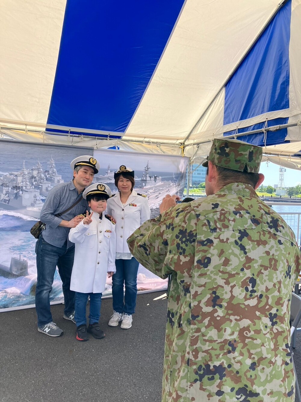 Vor den jeweiligen Tapeten der Land-, See- und Luftstreitkräfte können Eltern und Kinder gemeinsam Fotos machen und genießen.