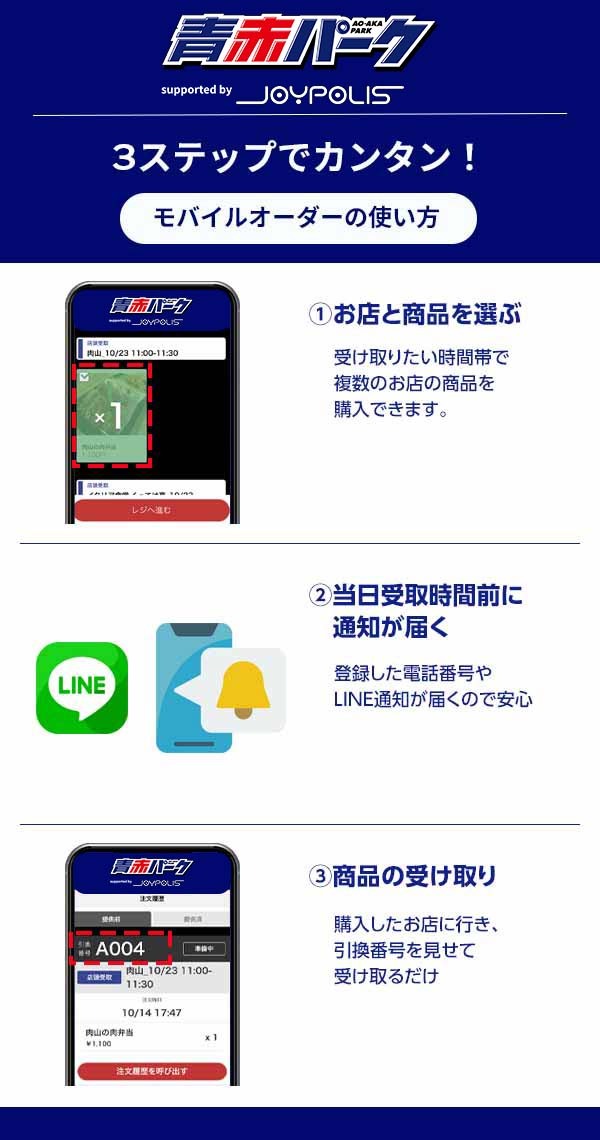 ・Einmal bestätigte Bestellungen können nicht geändert oder storniert werden. Wenn die Abholung im AO-AKA PARK supported by JOYPOLIS nicht bis zum Ende der Öffnungszeiten erfolgt, wird die Bestellung entsorgt.