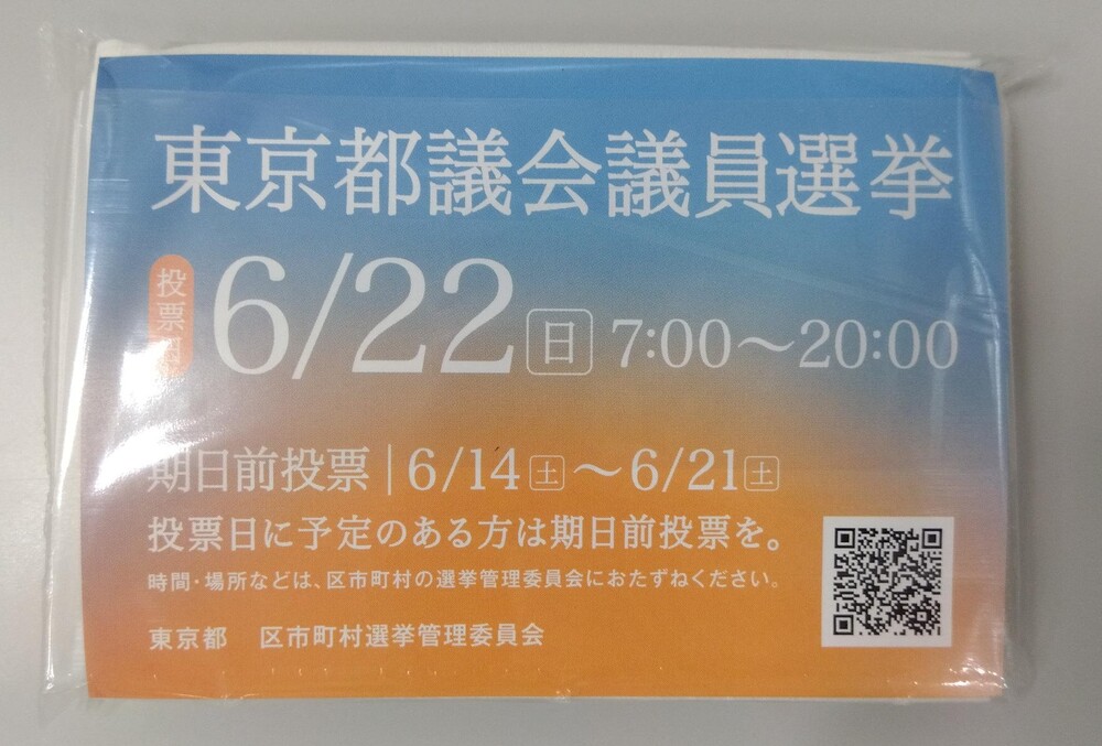 Der Wahltag für die Wahl der Mitglieder der Tokyoer Stadtversammlung ist der So., 22.06. Die vorzeitige Stimmabgabe beginnt am Sa., 14.06. Weitere Details zur Wahl finden Sie auf der untenstehenden speziellen Webseite.