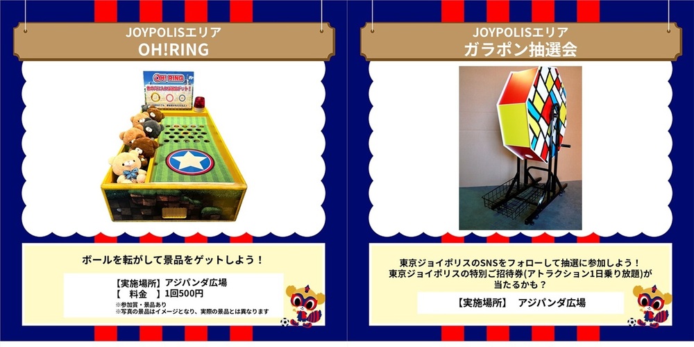 ・Die heute im AO-AKA PARK supported by JOYPOLIS geplanten Attraktionen „TOKYO DOROMPA Hüpfburg“, „Karnevalspiele“ und „GoGoShooting!!“ fallen aufgrund von Regen aus. Je nach Wetterlage kann es zu einer Wiederaufnahme kommen.