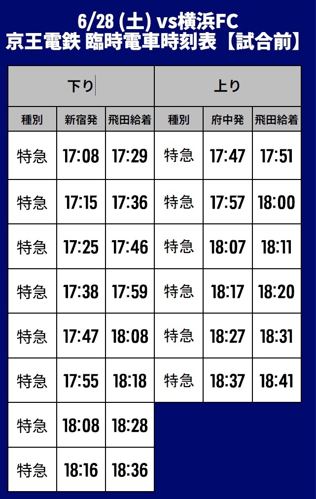 Am Sa., 28.06.2025, Meiji Yasuda J1 League, 22. Spieltag, gegen Yokohama FC (Anpfiff 19:00 / Ajinomoto Stadium) informieren wir über den Sonderverkehr (Bahn), Shuttlebusse und Linienbusse.