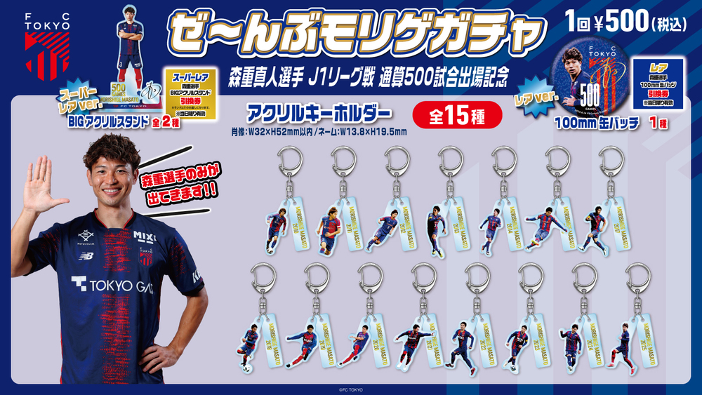 Am Mi., 14.06.2025 in der Meiji Yasuda J1 League gegen Cerezo Osaka hat Masato MORISHIGE sein 500. Spiel in der J1 League absolviert. Zur Feier dieses Meilensteins bieten wir eine Gacha zum 500. J1 League-Spiel von Masato MORISHIGE an. Die Stückzahl ist begrenzt, bitte kaufen Sie frühzeitig.