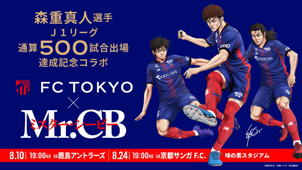 Anlässlich der Erreichung von Masato MORISHIGEs 500. Einsatz in der J1-League geben wir bekannt, dass eine Zusammenarbeit zwischen FC Tokyo und dem Fußball-Manga „Mr.CB“, der in „Young Champion“ (Akita Shoten) erscheint und einen Innenverteidiger als Hauptfigur hat, wie unten beschrieben beschlossen wurde.