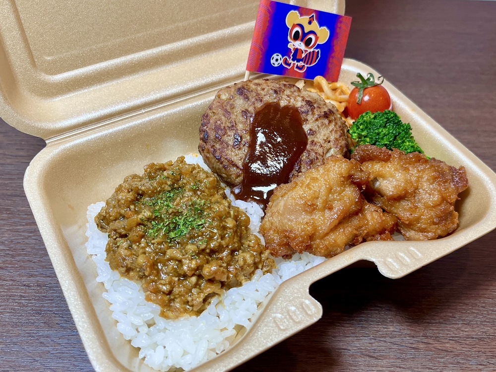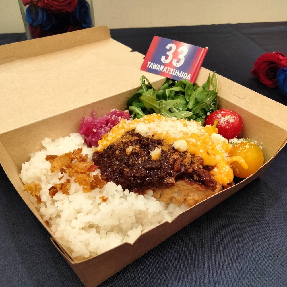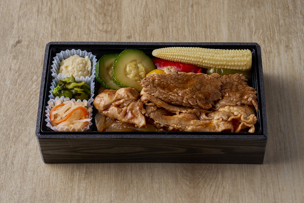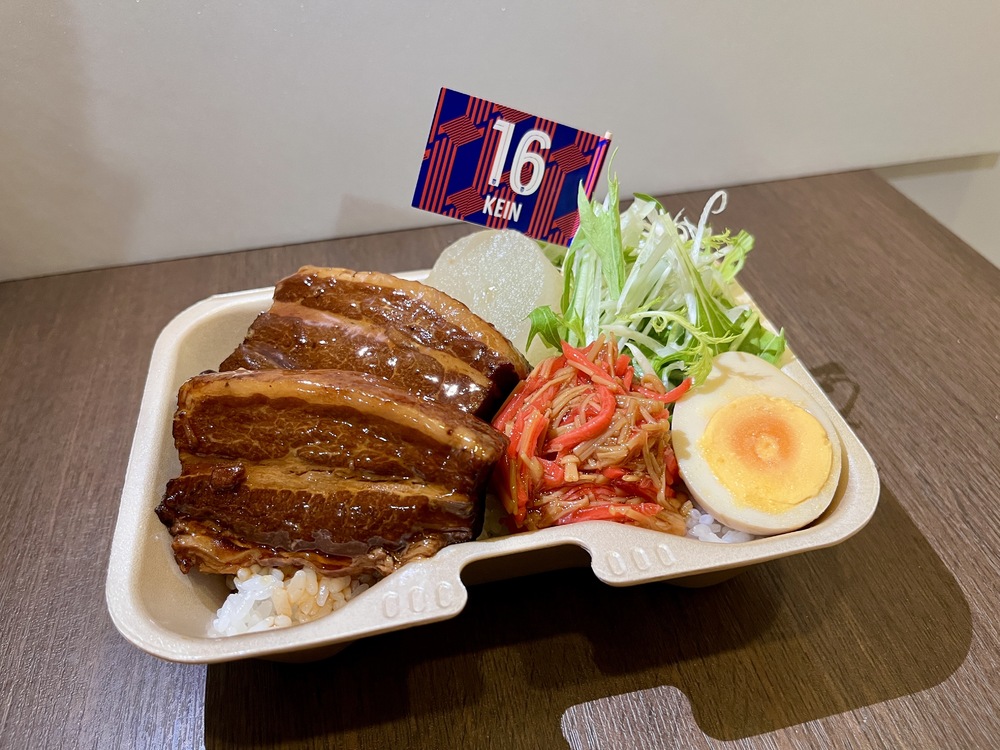 Das erste Kollaborationsgericht von Spieler Muroya ist ein Bento mit drei Fleischsorten (Rinderlende, Schweinerippchen, Hähnchenschenkel) und sommerlichem Gemüse, das perfekt zur heißen Jahreszeit passt. Ganz nach dem Geschmack von Muroya, der BBQ liebt, wurde mit BBQ-Sauce für das Fleisch und angebrannter Sojasauce für das Gemüse ein rauchiges Aroma kreiert.