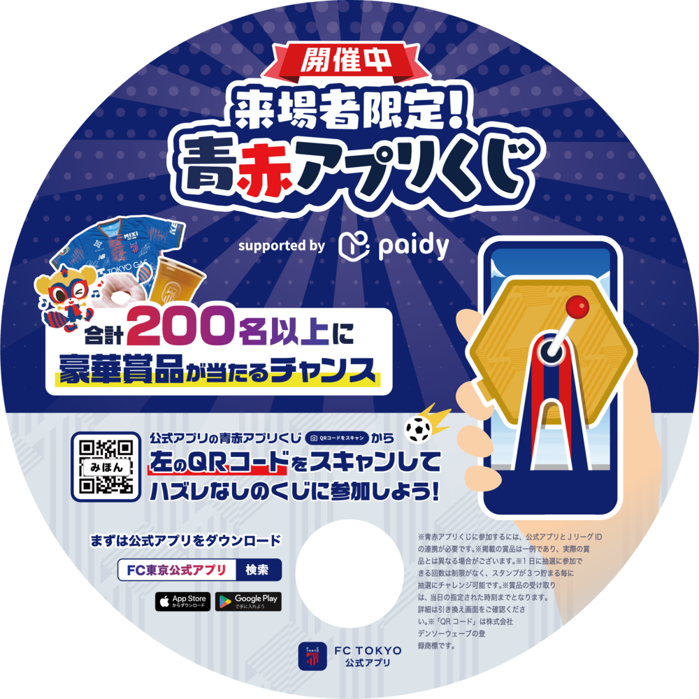 Am Sa., 19.07.2025, im 24. Spieltag der Meiji Yasuda J1 League gegen die Urawa Reds (Anpfiff 19:00 / Ajinomoto Stadium) führen wir die erste Phase der Erneuerungskampagne der exklusiven "Blau-Rot-App-Lotterie supported by Paidy" für Besucher durch, die die offizielle FC Tokyo App nutzen.