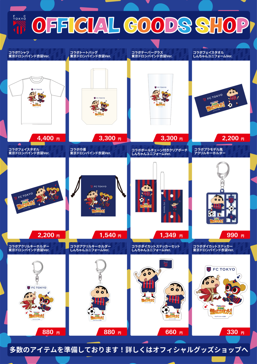 Shin-chan in einem FC Tokyo-Trikot und TOKYO DOROMPA in einem indischen Filmkostüm sind Teil der Artikelreihe. Nutzen Sie diese Gelegenheit und sichern Sie sich Ihre Artikel!