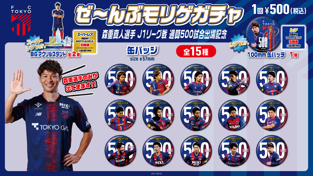 □ Alle Morige-Gacha Wiederverkauf!Zur Feier von Masato MORISHIGEs 500. Einsatz in der J1 League verkaufen wir die „Alle Morige-Gacha“ erneut!