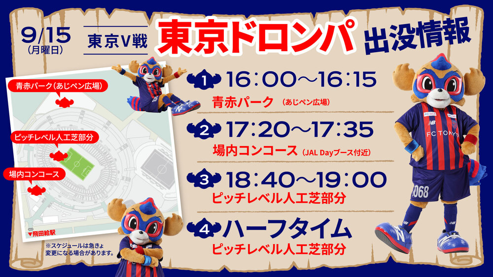 Mo., 15.09. (Feiertag) 2025Meiji Yasuda J1 League 29. Spieltag vs Tokyo Verdy (19:00 Anstoß/Ajinomoto Stadium)wird TOKYO DOROMPA wie folgt erscheinen.Freuen Sie sich darauf!