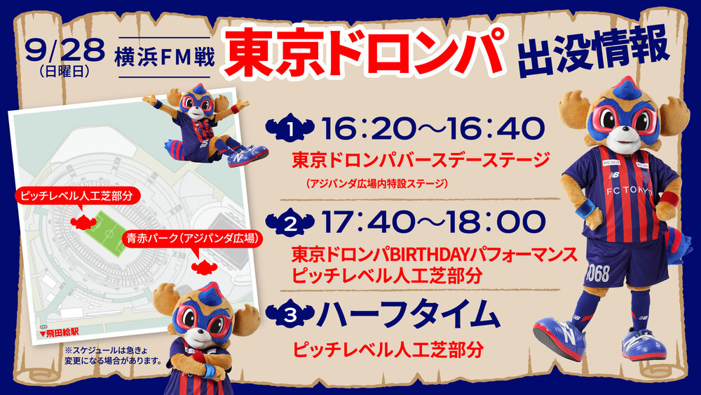 So., 28.09. 2025 Meiji Yasuda J1 League 32. Spieltag vs Yokohama F.Marinos (Anpfiff 18:00 / Ajinomoto Stadium) wird TOKYO DOROMPA wie folgt erscheinen.