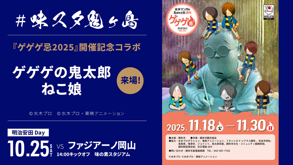 Am Sa., 25.10., beim Spiel gegen Okayama wurde zur Feier der Veranstaltung „Gegege-Ki 2025“ eine Kooperation mit der FC Tokyo-Kampagne „#AjinomotoOnigashima“ beschlossen. Gegege no Kitaro und Neko Musume werden im Ajinomoto Stadium anwesend sein und an der Veranstaltung teilnehmen.