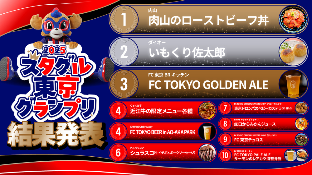 Wir geben die Ergebnisse des „Staguru Tokyo Grand Prix“ bekannt, bei dem der beliebteste Gourmet-Snack von FC Tokyo ermittelt wird.